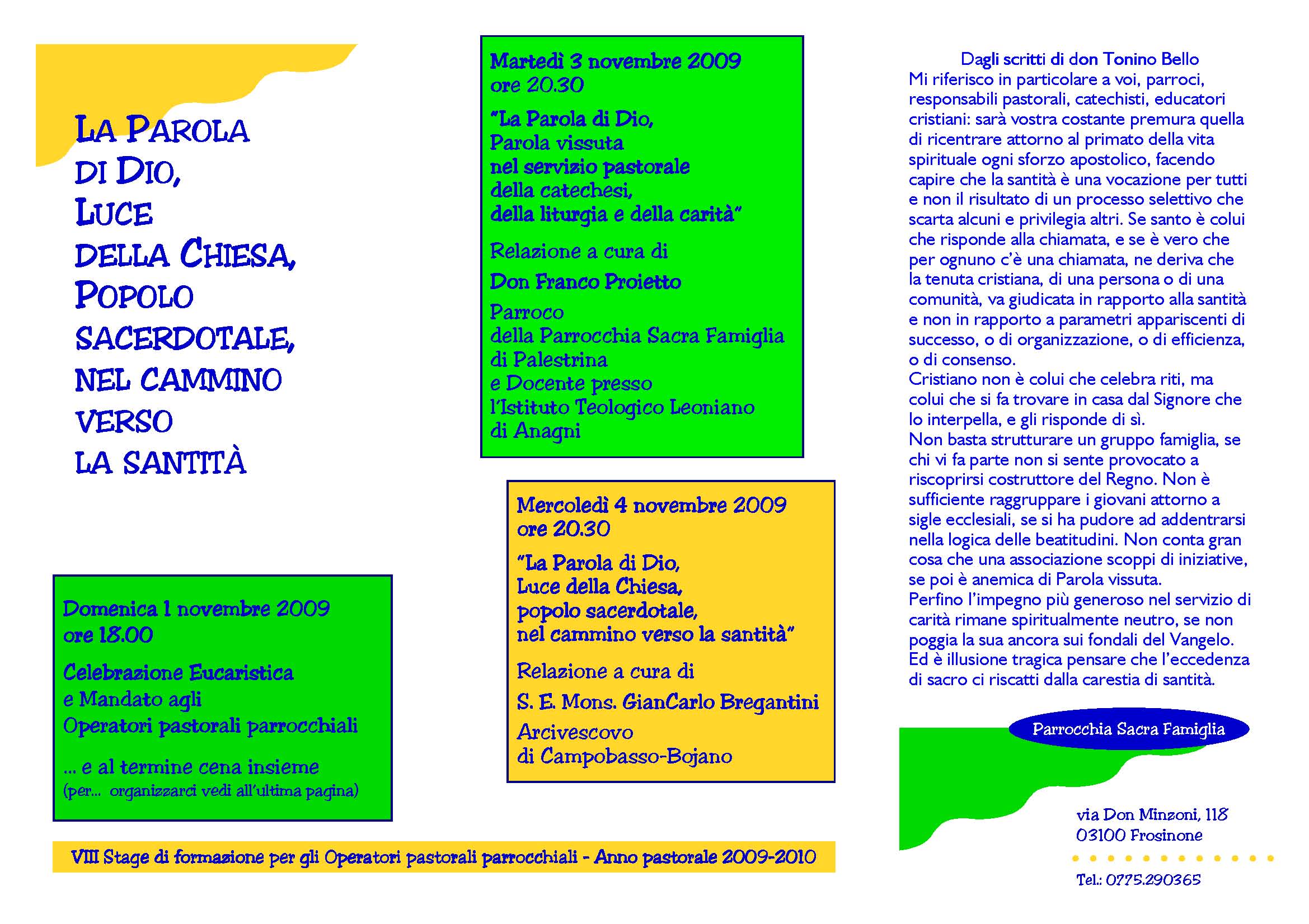Interessante incontro, mercoledì 4 novembre, alle ore 21 nella parrocchia della Sacra Famiglia a Frosinone. Interverrà mons. Giancarlo Bregantini, arcivescovo di Campobasso, già vescovo della Locride. Parlerà sul tema dell’importanza della parola di Dio nella vita della Chiesa.