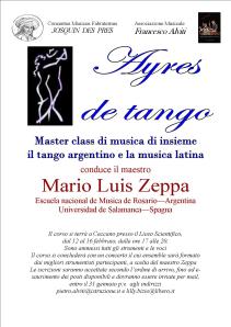 L’Associazione Musicale Francesco Alviti e il Concentus Musicus Fabraternus Josquin Des Pres annunciano il Master class Ayres de tango, Master class di musica di insieme su il tango argentino e la musica latina. Lo condurrà il m° Mario Luis Zeppa, argentino, docente presso la Escuela Nacional de Musica di Rosario e l’Universidad de Salamanca, Spagna.