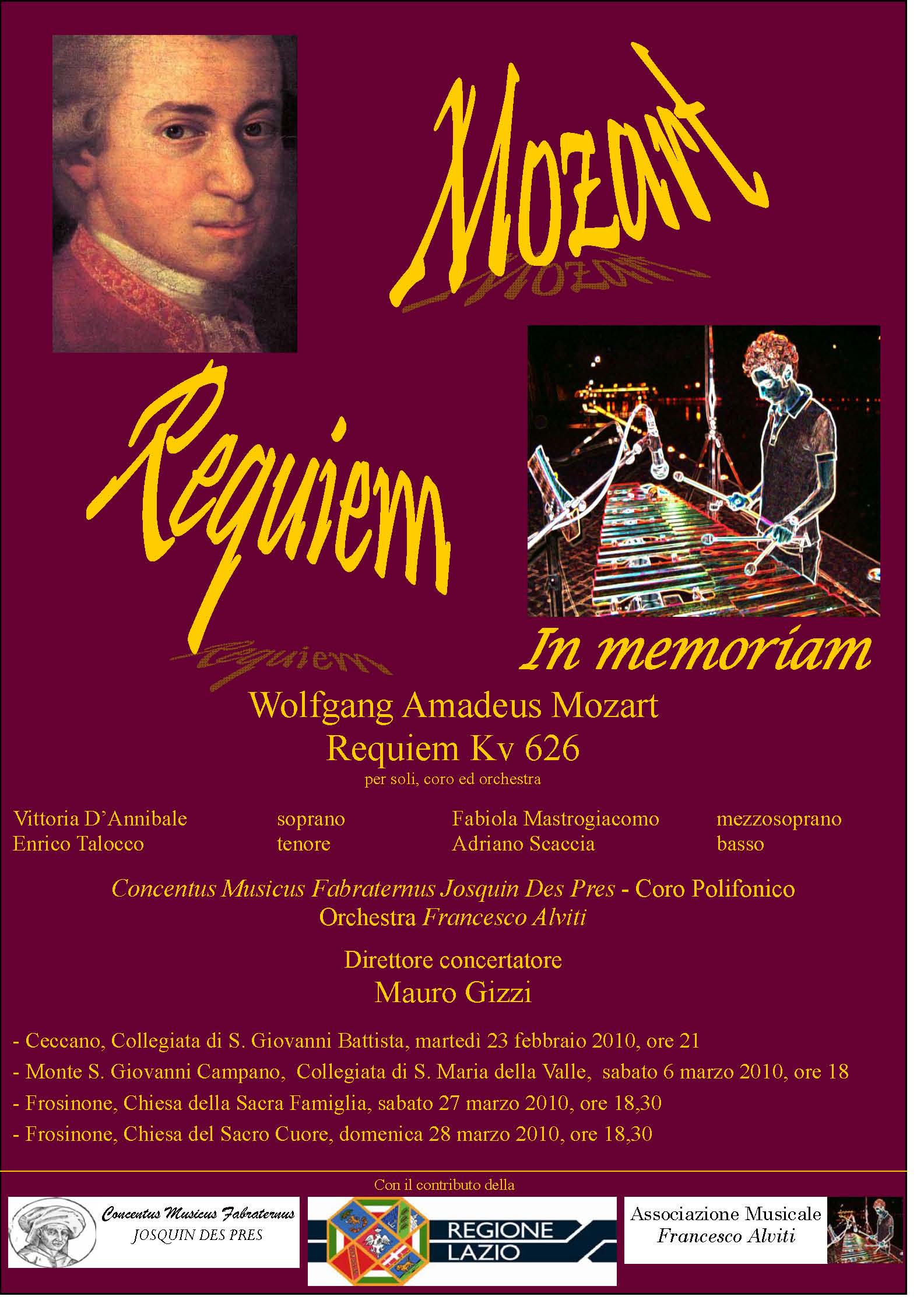 4 concerti con il Requiem di Mozart, per ricordare Francesco Alviti, ad un anno dalla sua dipartita al cielo, 23 febbraio 2009 – 23 febbraio 2010
