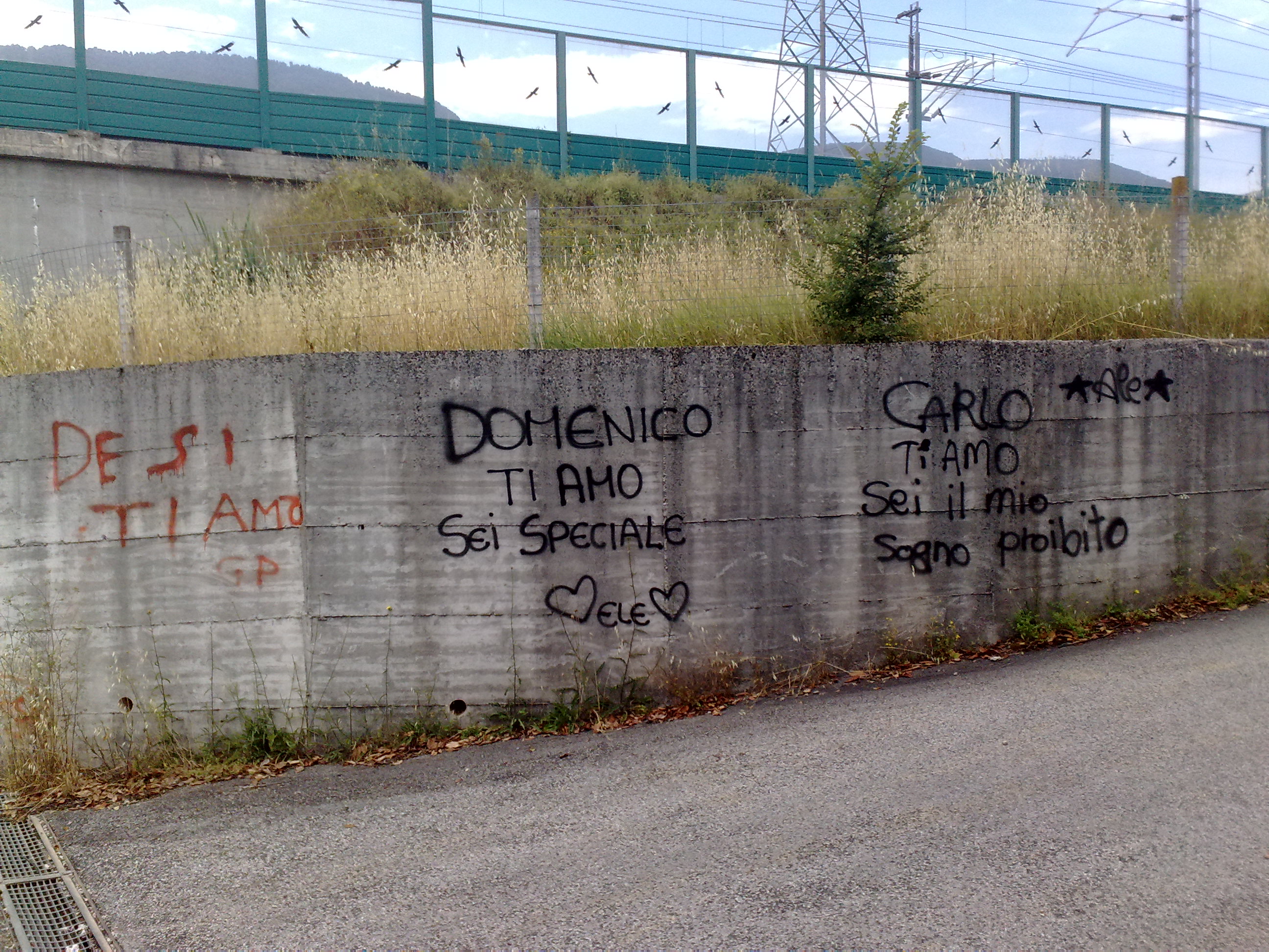 Certo, ci sono scritte rivolte anche alle ragazze ma sono la netta minoranza. In gran parte sono tutte dichiarazioni d’amore… C’e n’è una alquanto minacciosa, però: attenti, siamo state qui! Altro cambiamento in vista? Le donne diventano manesche e bulle?