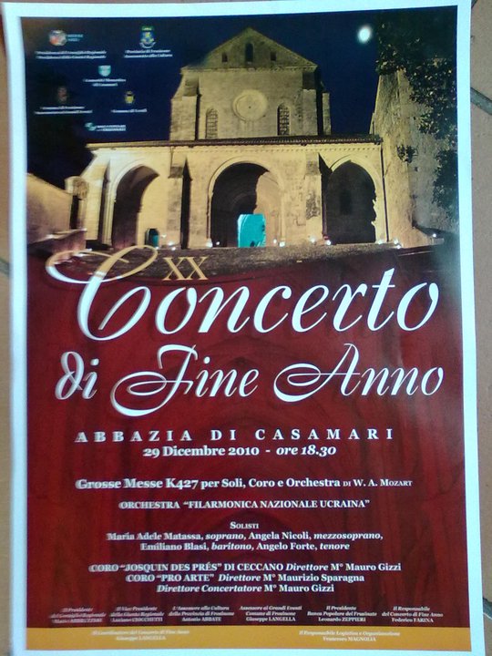 La Grosse Messe sarà diretta da Mauro Gizzi con lOrchestra Filarmonica Nazionale dell’Ucraina, il coro polifonico del Concentus Musicusa Fabraternus Josquin Des Pres, che celebra in questi giorni il ventennale della sua costituzione, il coro Pro arte, diretto da Maurizio Sparagna. Le voci soliste saranno quelle di Maria Adele Matassa, soprano, Angela Nicoli, mezzosoprano, Emiliano Blasi, baritono ed Angelo Forte, tenore. Il XX concerto di fine anno è organizzato dalla Comunità Monastica di Casamari, in collaborazione con la Provincia di Frosinone, il Consiglio Regionale del Lazio e la Banca Popolare del Frusinate.