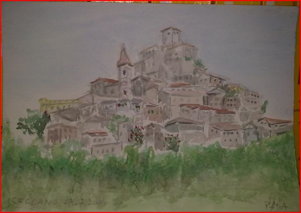 Molti stranieri che visitano Ceccano, soprattutto grazie alle attività internazionali del Liceo e del Coro Josquin des Pres, la trovano bella, spesso sorprendendoci nel giudizio. Stavolta, Peter Müller, docente di tedesco e di latino alla scuola europea del Lussemburgo, ora a Treviri, ha dipinto la nostra città. Ecco una foto dell’acquarello