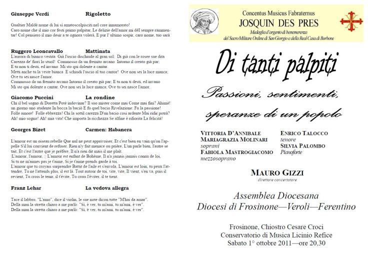 Qui il programma di sala del concerto Di tanti palpiti, sabato 1° ottobre, Conservatorio di Frosinone