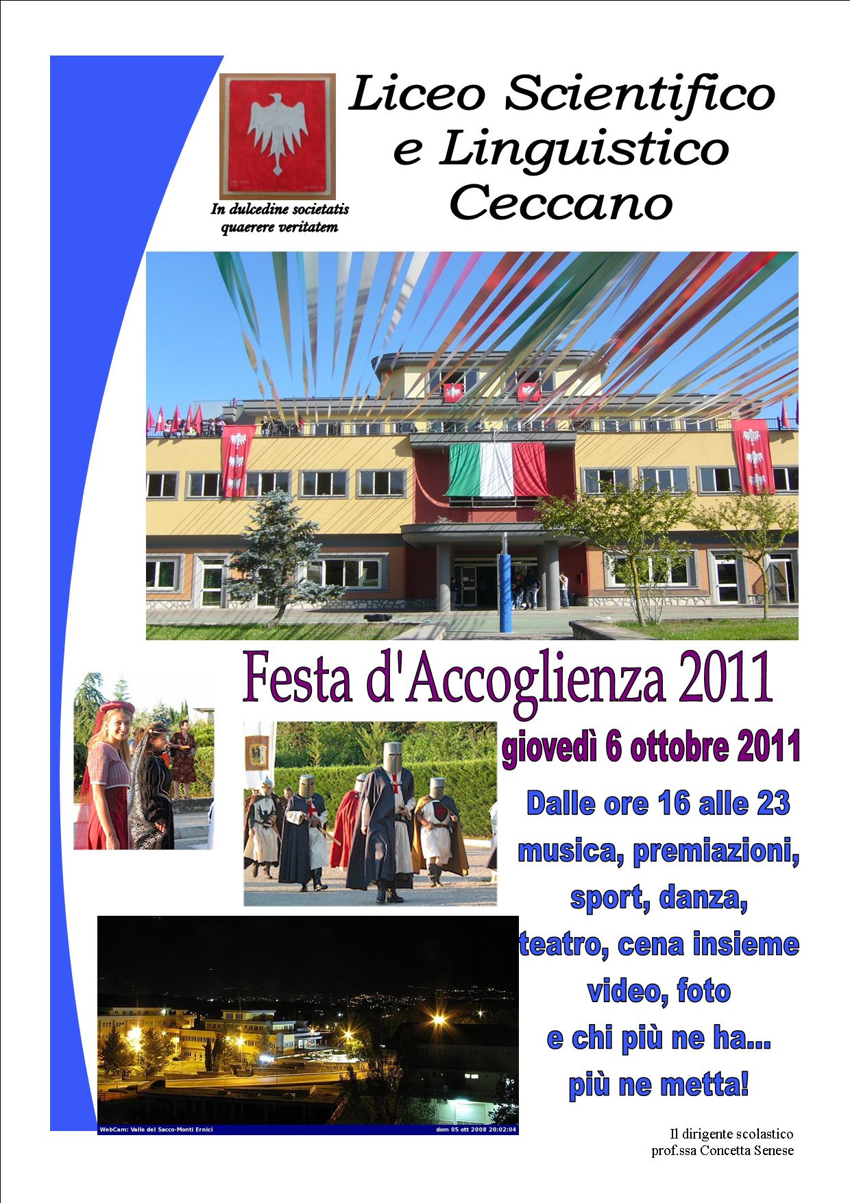 Come tradizione, giovedì 6 ottobre si terrà la Festa d’Accoglienza del Liceo di Ceccano per l’anno scolastico 2011-2012.