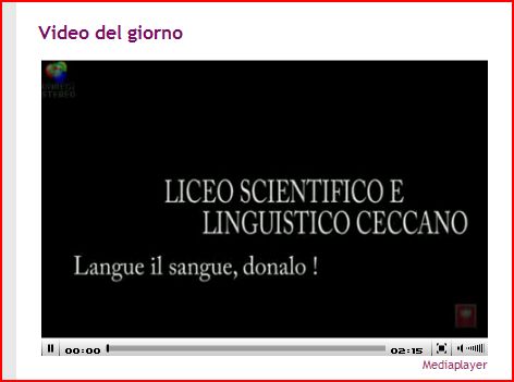 L’Assessorato alla Cultura del Lazio ha scelto Langue il sangue, donalo dei ragazzi del Liceo come video del giorno. ecco il link