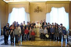 Cari ragazzi, puntate in alto: così Benedetto XVI si è rivolto ai ragazzi dell’Acr in udienza il 19 dicembre. Ringraziandoli della visita, il Papa ha rivolto ai ragazzi un breve discorso dedicato al tema di riflessione scelto quest’anno dall’Associazione: l’invito fatto a Bartimeo: “Alzati, ti chiama”. Questo invito – ha detto il Papa – “si è già ripetuto molte volte nella vostra vita e si ripete anche oggi. La prima chiamata l’avete avuta con il dono della vita; siate sempre attenti a questo grande dono, apprezzatelo, siatene riconoscenti al Signore, chiedetegli che doni una vita gioiosa ad ogni ragazzo e ragazza del mondo: tutti siano rispettati, sempre, e a nessuno manchi il necessario per vivere”.