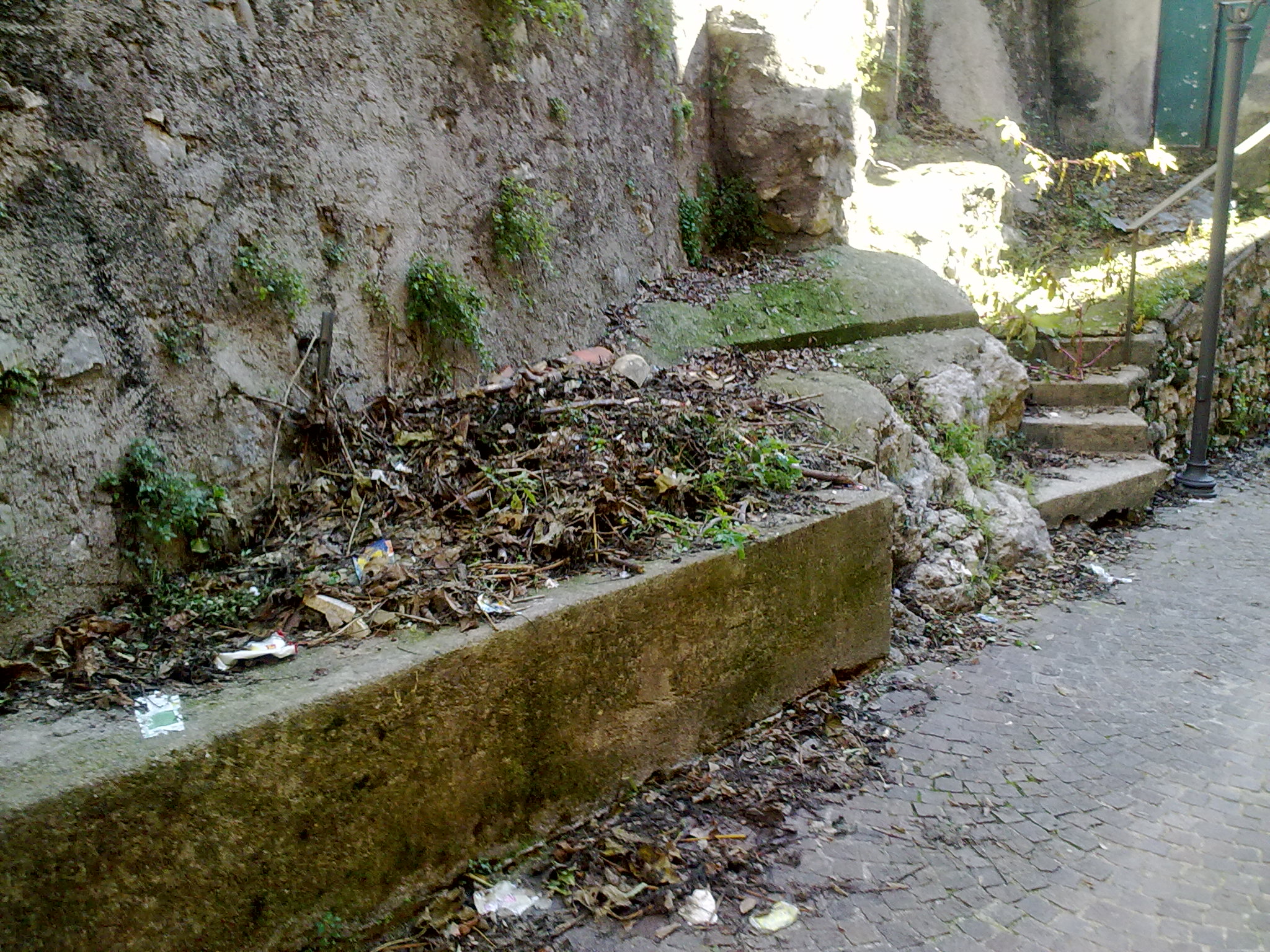 Sono vent’anni che abito qui, non ho mai visto uno spazzino. E la signora che si lamenta così non abita in campagna o in una lontana periferia di Ceccano ma a poche decine di metri dal Palazzo Comunale, in Vicolo Mura Castellane dove è possibile ancora vedere una torre delle mura del Castello dei Conti. I Ceccanesi chiamano quella strada “gli bucinecci” in riferimento al portico che la collega a via Salita al Castello.