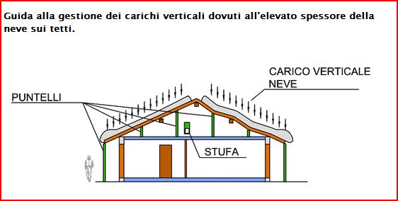 Rimane la preoccupazione dei cittadini in merito all’aumento dei carichi della neve dovuti alla ripetute nevicate. Nei casi in cui, osservando il tetto dall’esterno e accedendo al sottotetto, si percepisce l’incurvamento è possibile intervenire: