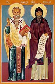 Cirillo e Metodio, fratelli, nativi di Salonicco, inviati in missione presso gli Slavi dalla Chiesa di Bisanzio,