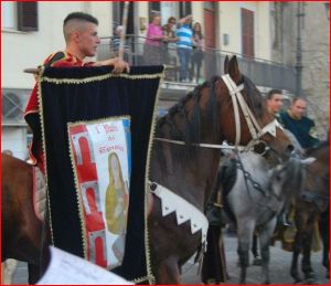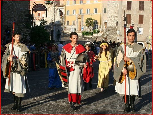 al dono dell’arme, stemma partito tra quello dei de’ Ceccano, l’aquila argento in campo rosso, e quello degli Stefaneschi, le sei mezze lune alternate a bande, tutto rosso su campo bianco, hanno sfilato 250 figuranti in costume, con sbandieratori, tamburi, cavalieri, dame, principi e principesse, buffoni e giocolieri, armati, tutta una corte insomma in festa, che ha riportato Ceccano agli splendori del XIV secolo.