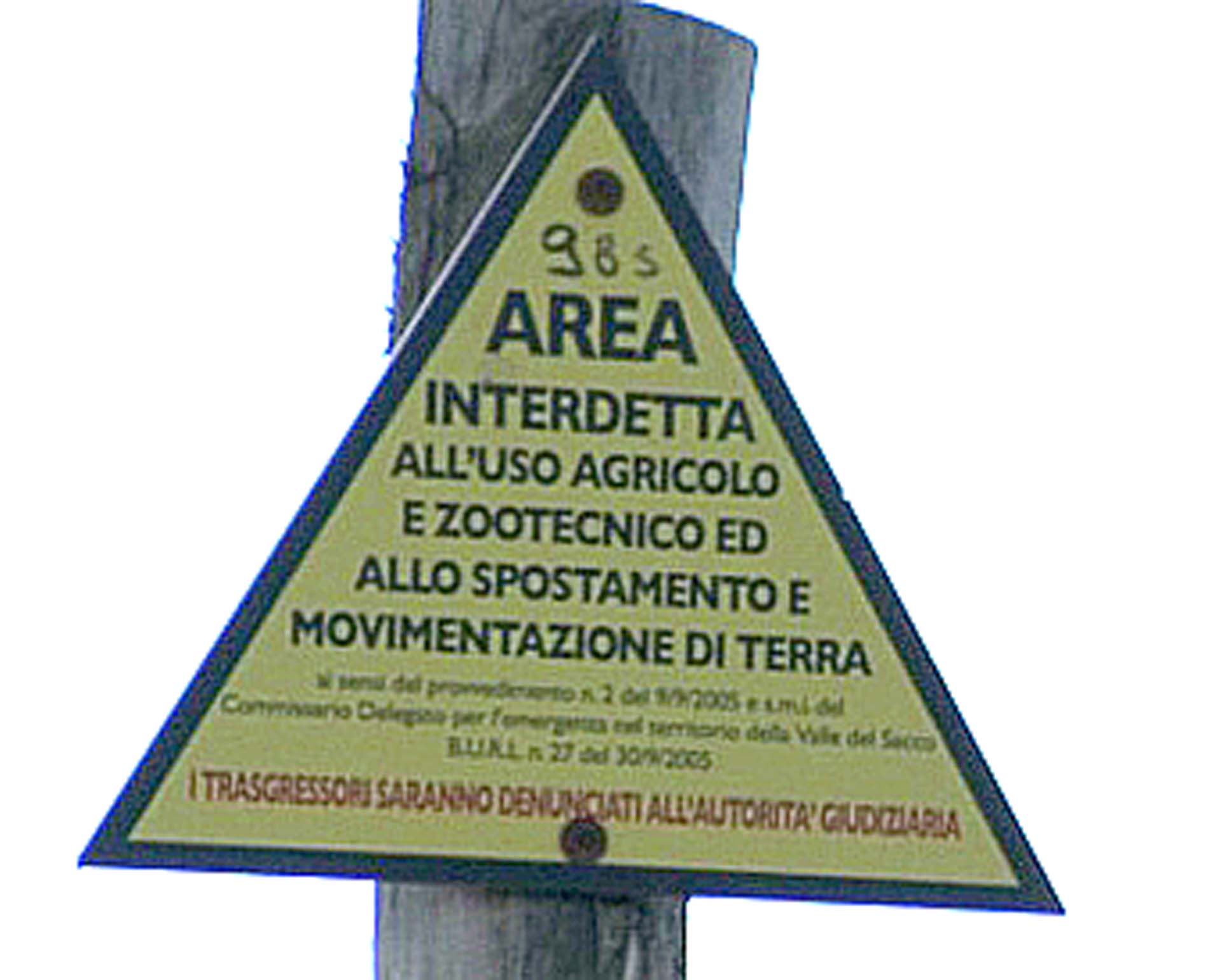 Sono triangolari e indicano l’interdizione all’uso agricolo e zootecnico dell’area per l’inquinamento derivante dallo scarico di sostanze chimiche nel fiume Sacco