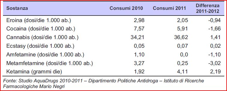 I dati sono basati sulle dichiarazioni degli intervistati. Tali risultati vengono incrociati con le analisi delle acque reflue, gli scarichi fognari. Ed ecco i dati per 1000 abitanti, relativi a 17 centri urbani