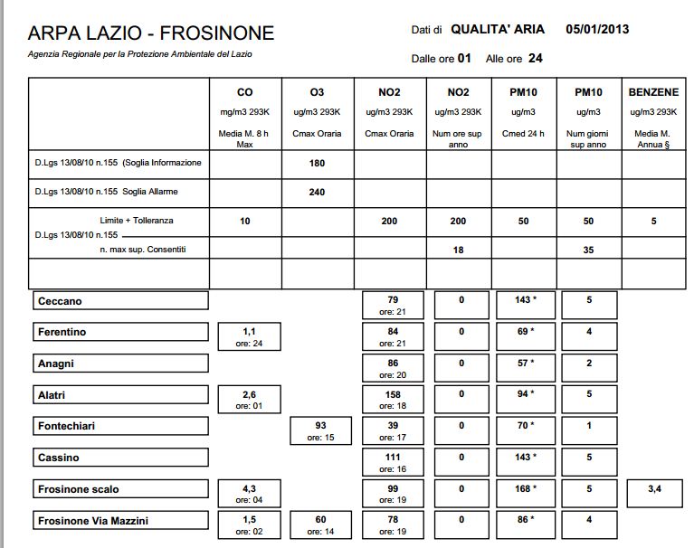 5 giorni su 5, probabilmente 6 su 6: come avevamo facilmente previsto i valori delle polveri sottili disperse nell’aria a Ceccano e a Frosinone si mantengono altissimi. La prima settimana del 2013 si rivela come una delle più inquinate con il fenomeno delle polveri atmosferiche chi si diffonde anche nella parte meridionale della provincia come dimostrano i dati del 5 gennaio