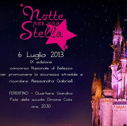 Era una stella e tante stelle la ricorderanno a Ferentino davanti la parrocchia di S. Maria degli Angeli dove Alessandra Gabrielli aveva passato tante giornate d’allegria e di impegno. Un incidente stradale l’ha tolta ai suoi e agli amici che ora vogliono ricordarla con quel clima di festa che tanto le piaceva. La manifestazione Notte per una stella ci sarà sabato 6 luglio e ha l’obiettivo di promuovere la sicurezza stradale con tanti sono i premi in palio: viaggi, ingressi centri benessere, corsi di guida sicura, ciondoli e possibilità di entrare nel mondo dello spettacolo, dell’alta moda e del cinema. Inizio alle 20,30