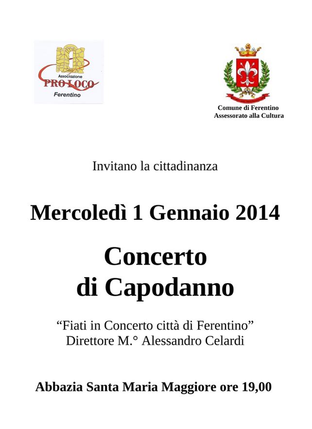 Concerto di Capodanno con l’Orchestra di fiati di Ferentino, Abazia di S. Maria Maggiore, ore 19