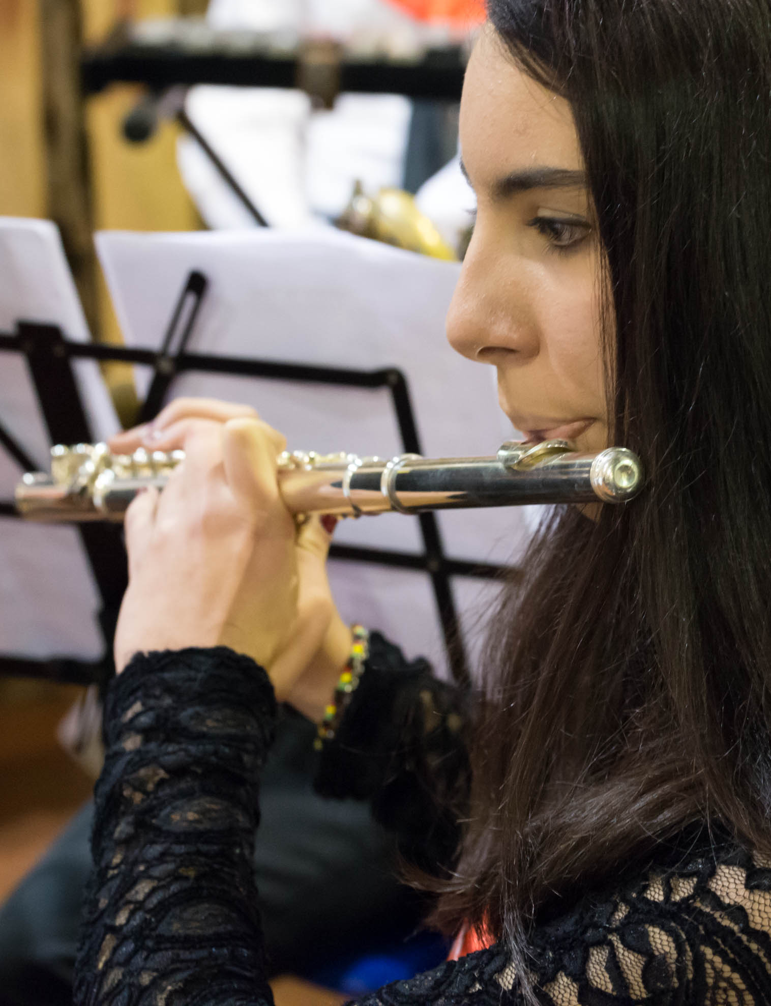 80 ragazzi, violini, viole, clarinetti, fagotti, trombe, flauti, tromboni, sax, tuba, pianoforte, percussioni, musica elettronica, chitarre, un grande coro. Così si presentano le classi musicali del Liceo