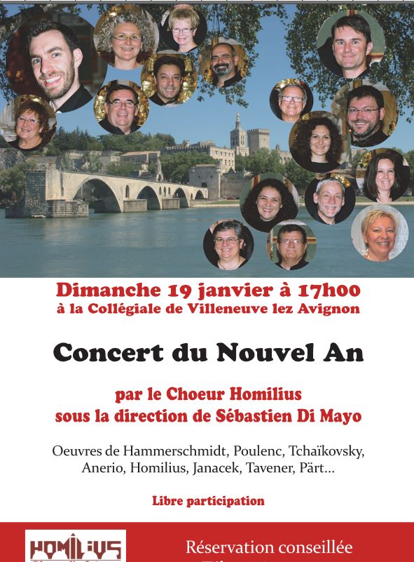 Concerto augurale domenica 19 gennaio del Coro Homilius, ospite a Ceccano del Concentus Musicus fabraternus Josquin Des Pres. Appuntamento nella Collegiale de Villeneuve lez Avignon, alle ore 17