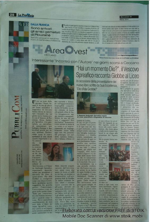 Il quotidiano La Provincia ha dato spazio all’articolo di Chiara Sodani, Hai un momento, Dio… a commento dell’incontro al Liceo di Ceccano con il vescovo Spreafico