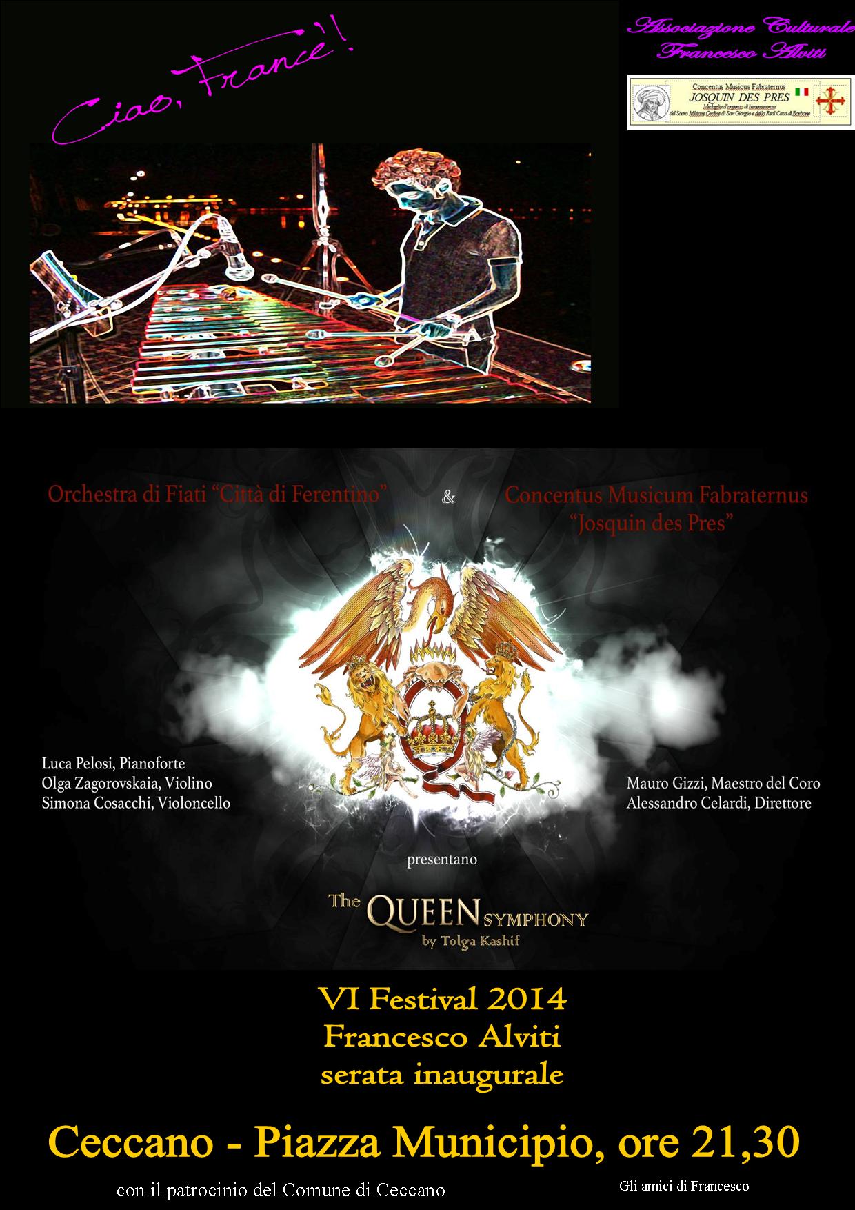 We are the champions, Radio Gaga, Mama… così si aprirà il 25 Giugno alle 21.30 in Piazza Municipio, a Ceccano, la sesta edizione del Festival Francesco Alviti: sul palco ci saranno l’Orchestra di Fiati “Città di Ferentino” diretta dal M° Alessandro Celardi ed il Coro del Concentus Musicus Fabraternus “Josquin Des Pres” di Ceccano diretto dal M° Mauro Gizzi. Le due formazioni saranno impegnate nell’esecuzione di “The Queen Symphony”, un lavoro sinfonico composto nel 2002 dal compositore britannico Tolga Cashif con lo scopo di esprimere tutta l’originalità e l’essenza della grande musica dei Queen; l’intento del compositore è stato non riproporre semplicemente i temi più celebri del gruppo rock londinese ma di trarre spunto compositivo da essi per dar così vita ad un lavoro di più ampio respiro. Suddiviso in sei movimenti, il lavoro toccherà alcuni dei brani più celebri come Radio Gaga, I was born to love you, Love of my life, Killer Queen, Another bites the dust, Who wants to live forever, Bicycle race, Mama, Just killed a man…,We will rock you, Scaramouche e We are the champions.