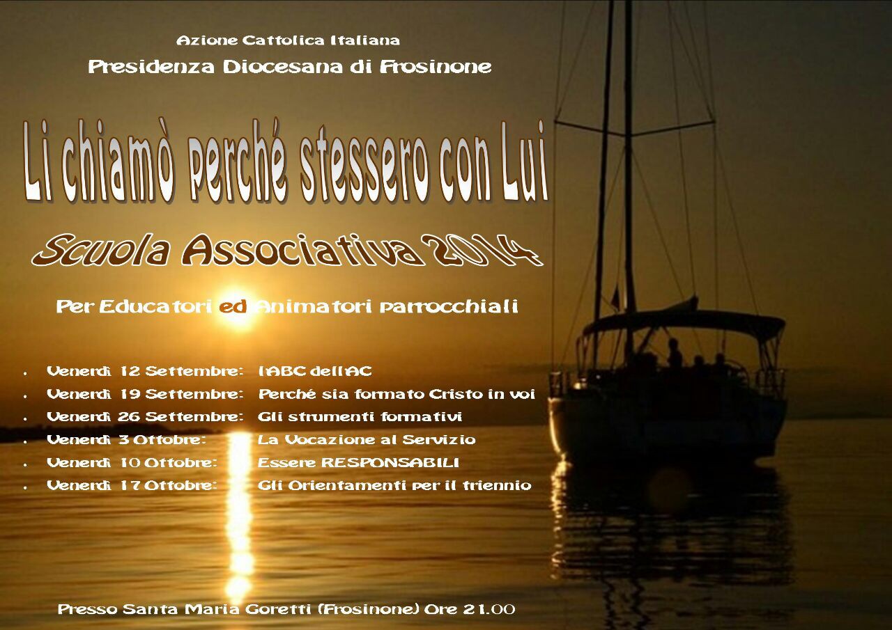 Venerdì 19 settembre, II incontro della scuola associativa dell’Azione Cattolica, ore 21, Salone della Chiesa di S. Maria Goretti, a Frosinone