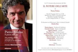 L’associazione Culturale “Il Centro del Fiume” e l’associazione Ars est vita OInlus comunicano che il il giorno venerdi’ 26 settembre alle ore 18.00 a Ceccano sarà presente l’On. Pietro Folena per la presentazione del libro “Il potere dell’arte”. “Il potere dell’arte” è il frutto di un percorso personale che ha portato l’autore a puntare sul sistema dell’arte come unica risposta al degrado della situazione delle cultura in Italia: nel testo Folena espone la sua “formula XXI” — per ogni euro pubblico investito nella cultura se ne generano 21 nell’ambito privato; con investimenti di moderata entità quindi il Pil culturale,oggi stimato intorno ai 40 miliardi di euro, potrebbe facilmente raddoppiare. È un paradosso micidiale: il Paese dell’arte del potere, di Guicciardini e Machiavelli non riesce a “dare potere all’Arte” a cavare un ragno dal buco benché i dati del patrimonio artistico-culturale in suo possesso siano impressionanti, basti nominare i 47 siti riconosciuti dall’Unesco come patrimonio dell’Umanità.