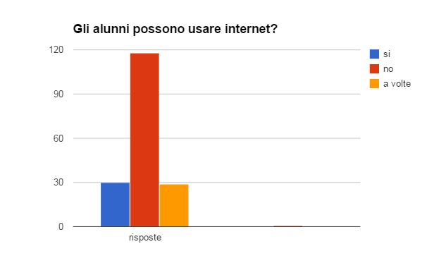 rimangono zone non ancora raggiunte dal segnale. L’ultima domanda del sondaggio riguardava l’utilizzo di internet da parte degli alunni: oltre due terzi delle classi sono raggiunte dal segnale internet ma soltanto nel 16% dei casi gli allievi possono navigare. Computer e tablet servono soltanto per il registro elettronico. Il BYOD (Bring your own device, porta il tuo dispositivo) è un grande sconosciuto