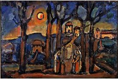 campo, che oggi c’è e domani verrà gettata nel forno, non farà assai più per voi, gente di poca fede?». L’Avvento si consuma in autunno. Le città si riempiono di colori che non lasciano indifferente chi vi cammina con occhi devoti non solo allo schermo del telefono. C’è una bellezza singolare nel disfacimento delle foglie: una paradossale sinfonia di colori caldi canta la morte, prima che la luce torni a prevalere sulla notte proprio con il solstizio invernale. Questa logica di bellezza nel disfacimento non è sfuggita né al pittore né al fisico. Rouault – uno dei pochi artisti del ’900 che, in quanto contemplativo, sapeva fare arte sacra, non semplicemente religiosa – dipinge un quadro originale: Autunno a Nazareth.