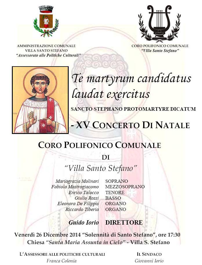 Concerto del Coro Polifonico Comunale di Villa Santo Stefano venerdì 26 dicembre 2014, ore 17:30 presso la Chiesa Santa Maria Assunta in Cielo di Villa Santo Stefano