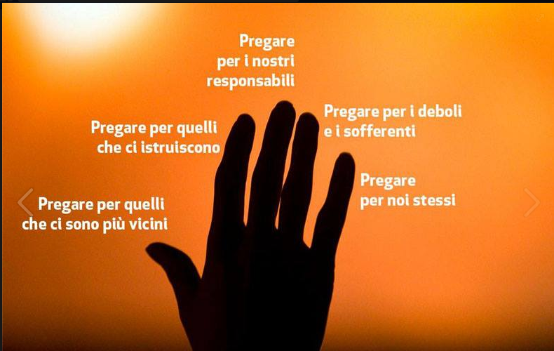 1) Il pollice è il dito più vicino a te. Così inizia a pregare per chi ti è più vicino. Sono le persone che più facilmente tornano nei nostri ricordi. Pregare per le persone a noi care è “un dolce obbligo”.