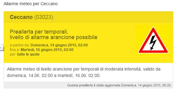 Una preallerta (livello GIALLO) viene emessa con fino a 48 ore di anticipo, quando l’insorgere del maltempo è ancora incerto oppure si possono verificare cambiamenti nello svolgimento temporale, così come nell’intensità oppure nella direzione dell’evento.