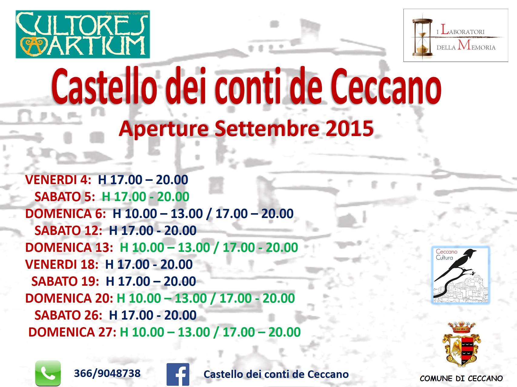 Orari di apertura alle visite del mese di settembre 2015 del Castello dei conti de Ceccano