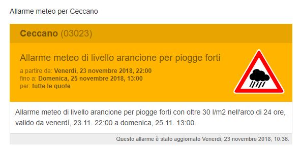 Emessa una nuova allerta meteo per piogge forti, con oltre 30 l/m2 nell’arco di 24 ore
