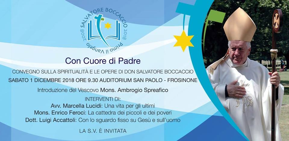 Sabato 1° dicembre, la diocesi di Frosinone ricorderà il suo vescovo amatissimo, Salvatore Boccaccio: riflessioni, testimonianze, analisi contribuiranno a far rivivere i tanti anni di spiritualità e di fede vissuti dalla diocesi guidata da mons. Boccaccio. L’appuntamento è per le ore 9 presso l’auditorium diocesano a S. Paolo.