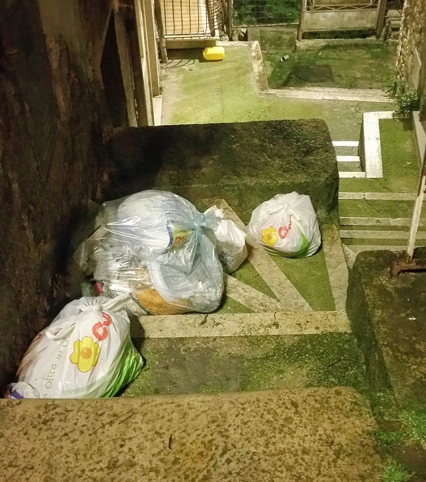 E’ l’immagine di via Ospedale Vecchio a ridosso di Piazza S. Giovanni, 100 metri scarsi dal comune di Ceccano, pieno centro storico fabraterno. I caccanesi non fanno distinzione tra fratte e mura cittadine. Le buste sono lì da oltre una settimana senza che accada nulla, nonostante le ripetute segnalazioni dei residenti.