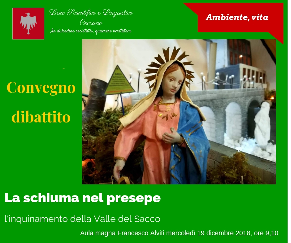 La schiuma nel presepe suscita il dibattito: l’obiettivo era appunto quello di una pro-vocazione che è perfettamente riuscita, rispettando anche la logica dell’incarnazione del Natale cristiano. La schiuma, l’inquinamento sono realtà della nostra vita, con le quali non possiamo non avere a che fare: e allora dobbiamo capire di più E’ questo lo scopo del convegno dibattito che si terrà mercoledì 19 dicembre, alle ore 9,15 nell’aula magna Francesco Alviti: sono stati invitati i sindaci della Valle del Sacco, amministratori pubblici, rappresentanti di associazioni di categoria.
