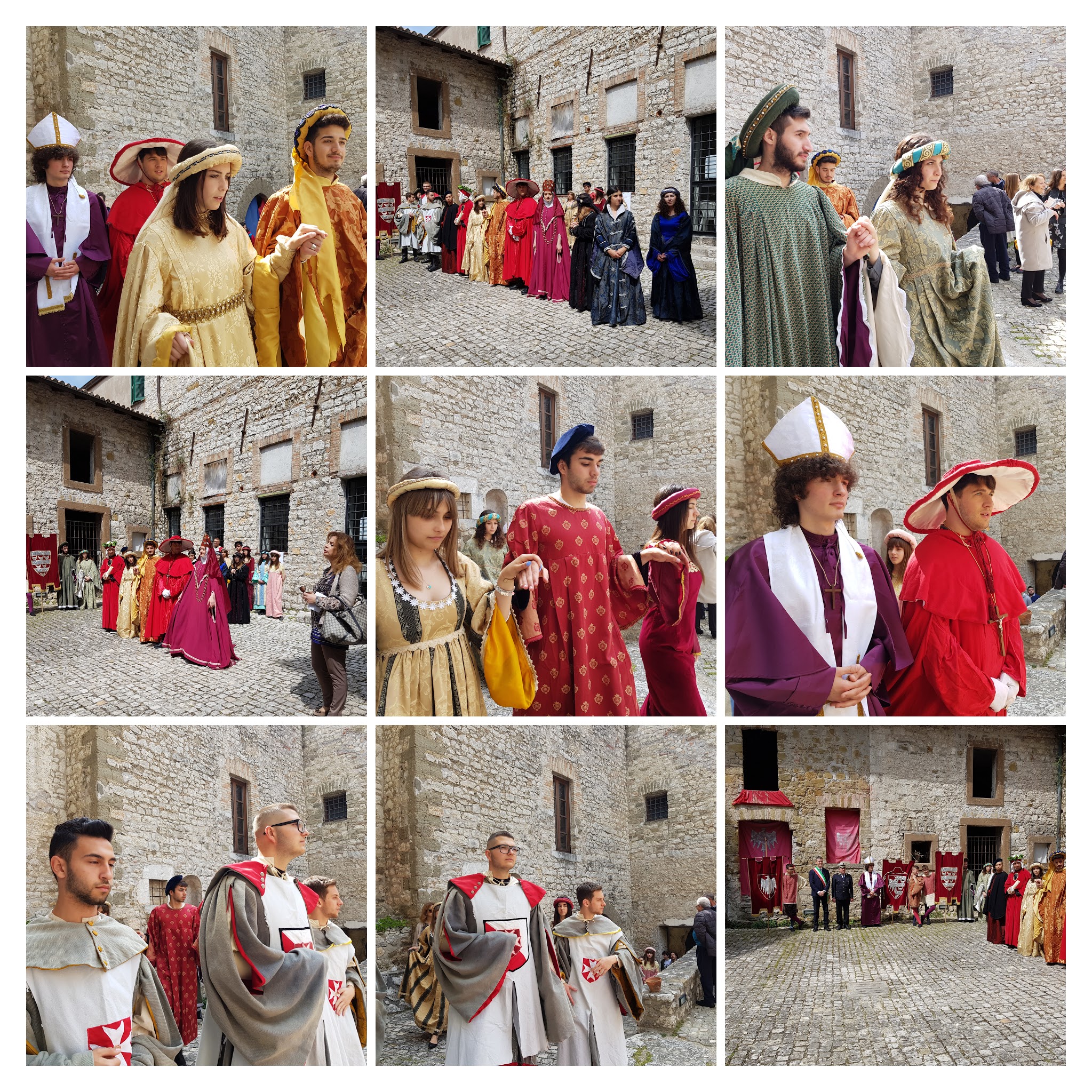 Sono tornati a sfilare a Ceccano, dopo quattro anni: il gran cardinale e la sua corte. Dal Liceo di Ceccano, oltre 50 figuranti in costume, ciascuno con il suo ruolo preciso, accompagnati da trombe, tamburi, gonfaloni, musici, dame e cavalieri. Il gruppo della rievocazione storica Annibaldo IV de Ceccano e la sua corte ha sfilato stamane da Piazza Municipio al Castello dei Conti di Ceccano, in occasione della presentazione del libro Il cibo tra storia e tipicità.