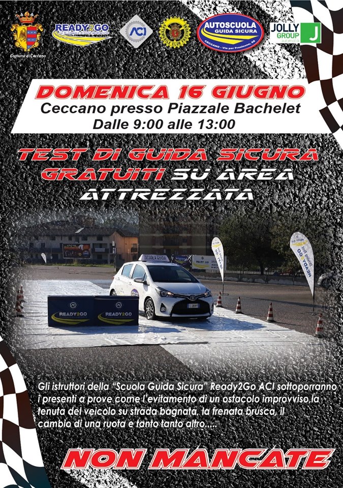 Volete imparare a frenare per bene, a non slittare sul bagnato, ad evitare un ostacolo all’ultimo momento? Sono manovre che potrebbero salvare la vostra vita ma anche quella degli altri. Opportunità stamane a Ceccano, 16 giugno, Piazzale Bachelet con Guida Sicura