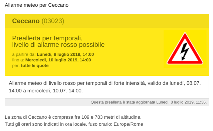 Preallerta per possibili forti temporali nella notte tra martedì e mercoledì