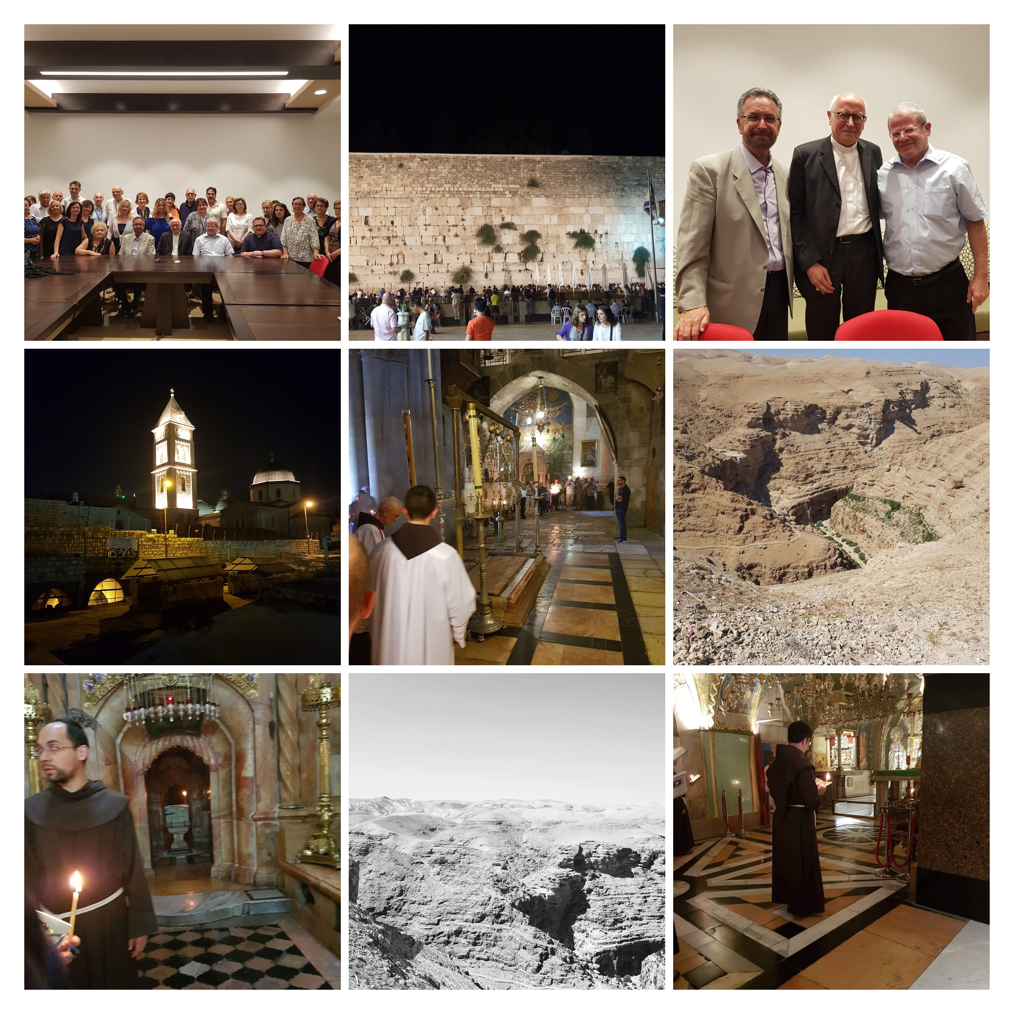 L’acqua e il deserto: acqua vera, poca, deserto vero, tanto, caldo, non soltanto metaforici. Che dramma non avere acqua, non poter irrigare, non poter bere e rischiare la vita stessa e tutto questo davanti a tanta acqua. Questo è il dramma del Mar Morto, una grande distesa d’acqua inutilizzabile in mezzo al deserto di Giuda, una contraddizione spaventosa tanto da doversela spiegare come la punizione divina per gli abitanti di Sodoma, capaci di approfittare di chi veniva dal deserto, malconcio per le fatiche del viaggio… traditori spietati della sacra legge dell’ospitalità. Le fiamme che distrussero Sodoma e Gomorra hanno lasciati il loro segno nella maledizione del lago che si unisce a quella del deserto. Ma anche il deserto, l’ambiente più inospitale, apparentemente chiuso alla vita può diventare lo strumento per il miglioramento di sé stessi: su quelle colline aride va Gesù per quaranta giorni per mettersi alla prova, per essere tentato e vincere la tentazione, davanti a quelle colline Giosuè fa squillare le trombe che abbattono le mura di Gerico, lungo quel fiume, che scava inesorabilmente la depressione che porta l’acqua a morire di sale, Gesù si presenta a Giovanni: ecco l’agnello di Dio, su di lui i malvagi, gli indifferenti, gli affaristi, i carrieristi scaricheranno i loro colpi. E poi le strade polverose di Gerico: mi è sembrato di sentirlo il grido di Bartimeo: figlio di Davide, abbi pietà di me, mentre cerca di sfuggire ai discepoli che cercano di trattenere il cieco, figlio di Davide, e butta il mantello… figlio di Davide… Signore, che io veda. Lì in quelle strade ha incontrato Zaccheo salito sull’albero, per vedere quest’uomo di cui tutti parlano… Darò ai poveri la metà dei miei beni, restituirò quattro volte tanto se ho rubato. Tutti cambiano se incontrano Gesù e si lasciano interpellare da lui. E poi la salita a Gerusalemme: si sale sempre a Gerusalemme indipendentemente dai percorsi e se si scende dalla città santa si possono fare brutti incontri Un uomo scendeva da Gerusalemme a Gerico: che impressione su quelle montagne totalmente inaridite che però l’ingegno umano, l’impegno di tanti sta trasformando in terreno coltivabile un pezzetto per volta: trasformeranno il deserto in fiumi di acqua pura. E finalmente la cupola dorata ci dice che ci siamo. Eccoci, Gerusalemme, alle tue mura. E poi l’interessantissimo incontro con i due rabbini israeliani, per dialogare e conoscerci meglio e il muro occidentale e la camminata sui tetti di Gerisalemme.