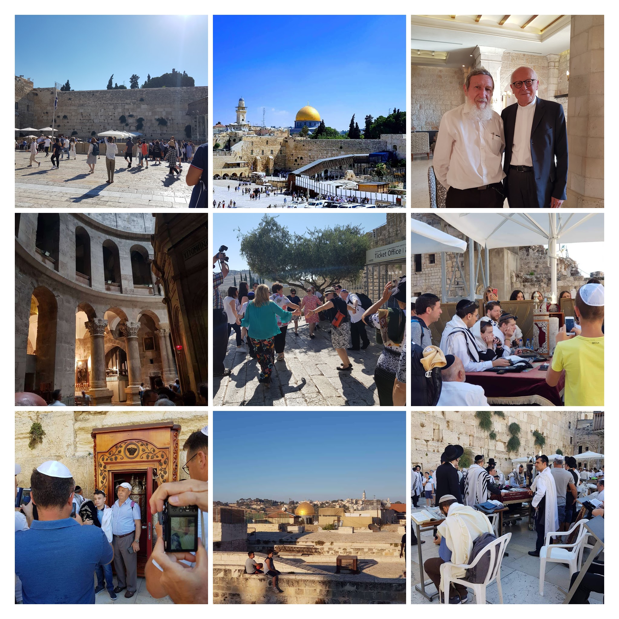 Non si va via da qui, ci si allontana soltanto, Gerusalemme è il centro della fede: qui tutto è avvenuto, qui tutto è stato scritto, qui ha camminato lui, qui ha parlato, guarito, convinto, convertito, qui è stato seguito, amato, osannato, qui è stato venduto, tradito, abbandonato, torturato, scambiato con un assassino, qui è stato crocifisso, qui tutti avevano perso fiducia in lui, avevano sperato ma… e poi quella tomba vuota, quell’annuncio delle donne, quel correre affannoso ma dubbioso sempre dei discepoli, il più giovane non ha il coraggio di entrare, vede le bende ripiegate, il più anziano, il capo quello che pure l’aveva rinnegato davanti ad una donna, per tre volte in quella notte tragica, proprio quello che era stato trafitto dallo sguardo di Gesù, invece entra e capisce… Ma deve rivoluzionare tutto il suo essere, abbandonare la sicurezza di una cultura antichissima che stamane abbiamo visto continuare ad essere raccontata ed insegnata: i padri che insegnano ai figli, che raccontano che il Signore è il Dio di Israele, che fanno loro indossare gli abiti della preghiera, arrotolarsi le cinghie che collegano la legge, la via, al cuore, e li abbiamo visti gioire, ballare, fare festa attorno a quei rotoli svolti sui tavoli e letti, cantati in una lingua ancestrale ed improvvisamente rinata, che però quel bambino deve sapere se vuol essere bar mitzvah, figlio della legge. Un clima di festa nonostante tutto, nonostante i progrom, le persecuzioni, la shoah, i tradimenti, le ruberie… gli amici improvvisamente scomparsi… Vedendo quei ragazzi al bar mitzvah stamane ho ripensato allo Yad Vashem, il museo della shoah che presenta un suggestivo, angosciante memoriale dei bambini, oltre 1 milione e mezzo passati nei campi, senza alcuna colpa se non di essere figli di un’ebrea. E’ accaduto, potrebbe accadere di nuovo. E poi il viaggio verso Giaffa con la grande contraddizione dell’Israele contemporaneo: il rapporto con i territori palestinesi, ristretti dentro un muro costruito con efficienza straordinaria e che giorno dopo giorno peggiora le condizioni di vita nel territori da cui non si può uscire, neppure per lavorare. Questa che dovrebbe essere terra di pace per tutti gli uomini mostra spesso come l’uomo possa tradire la sua vocazione ad amare e diventare strumento di morte per le forze del male…Come ha detto mons. Spreafico, questo viaggio ci faccia diventare portatori di quel messaggio che Gesù dà ai discepoli dopo la resurrezione. nonostante l’avessero abbandonato, tradito: Pace a voi!