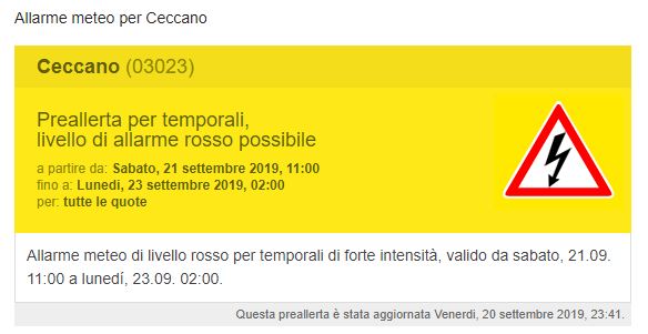 Emessa una preallerta meteo per possibili temporali di forte intensità