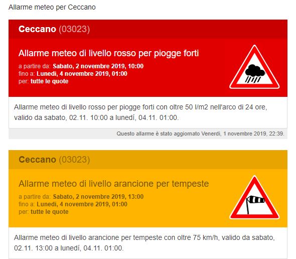 Ulteriore allerta meteo per Ceccano per venti forti, fino a 75 kmh