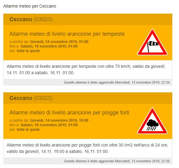 Questi allarmi sono semplici avvisi meteo che nulla hanno a che fare con le allerta eventualmente emesse dalla Protezione Civile Regionale