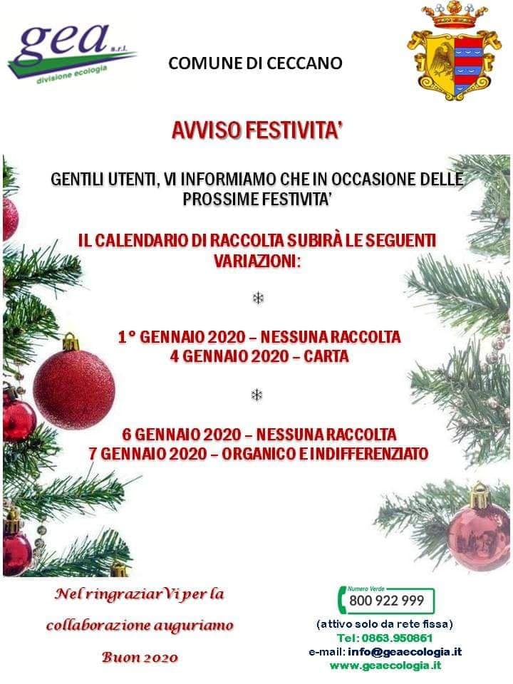 Attenzione, modifiche alla raccolta differenziata per Ceccano: sabato sarà raccolta la carta, non ritirata da più di 10 giorni, mentre l’umido verrà caricato martedì 7 gennaio insieme all’indifferenziato.