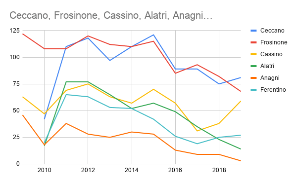 Ceccano ha vinto la sfida per la maglia nera dell’inquinamento atmosferico, ma sarà squalificata: c’è stato infatti il doping. Ho ricostruito l’andamento delle polveri negli ultimi 10 anni, sempre secondo le centraline dell’ARPA. Se guardate con attenzione i dati, che potete trovare qui, potrete notare come alcune città abbiano migliorato fortemente la loro situazione. Due, in particolare, Anagni ed Alatri, sono completamente scomparse nelle classifiche, la loro aria si è pulita del tutto, passando, per Alatri dai 77 sforamenti nel 2011 ai soli 14 del 2019, una sorta di miracolo. Come anche Anagni, 38 nel 2011, 3 nel 2019. Perché gli amministratori di Frosinone, Ceccano, Cassino non vanno a vedere come hanno fatto i loro colleghi degli Ernici? Anche Ferentino non scherza: 65 superamenti nel 2011, 19 nel 2017, 27 nel 2019. Ceccano ha un andamento stranissimo, in apparenza: nel 2010 soltanto 46 sforamenti, nel 2011 tre volte di più, 110 giorni in camera a gas e così via fino al 2019 con una tendenza a migliorare ma sempre con situazioni pesantissime. Ma che ci fu nel 2010 per avere un risultato così buono? La centralina era in Piazzale Europa: quando è stata spostata lungo la ferrovia i risultati sono peggiorati del 300%. Attualmente la centralina si trova a Borgo Berardi, a ridosso della ferrovia, a fianco del ponte francese lato Annunziata: secondo l’ISPRA, la centralina dovrebbe essere ad almeno 4 metri dal bordo stradale più vicino e a oltre 25 metri da un semaforo, da un incrocio, da una fermata di autobus… Borgo Berardi è esattamente il contrario. La centralina è a ridosso della sede stradale, di uno degli incroci più trafficati di Ceccano, dove fermano tutti i bus, all’impianto semaforico del ponte, con le lunghe file che si formano a pochi metri dalla centralina, ci sono i treni che frenano ad ogni ingresso in stazione con centinaia di freni azionati contemporanemanete (è dimostrato che le frenate dei treni generino notevoli quantità di polveri sottili, cfr qui ) con un ristorante ed una pizzeria con il forno a legna a due passi, una pasticceria e un kebab a pochi metri. Avere la maglia nera dell’inquinamento è un danno per tutti. Chi comprerebbe una casa in una zona avvelenata? Chi desidera i risultati dopati? Nella primavera del 2018 una centralina fu installata a Piazzale Bachelet con risultati mediamente del 30% inferiori a quelli di Borgo Berardi. Chi vuole che Ceccano sia la maglia nera dell’inquinamento?