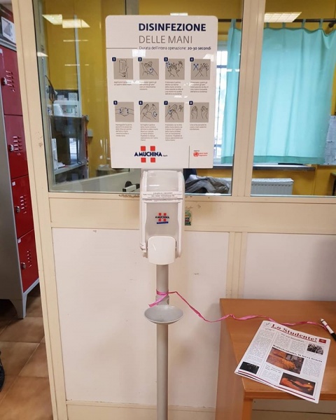 - ad utilizzare i diffusori di liquido antisettico, dopo essere andati in bagno. All’esemplare presente nell’atrio se ne aggiungeranno altri 5, uno per ogni piano. Ciascuno segua attentamente le istruzioni della cartellonistica per un’efficace igiene delle mani.