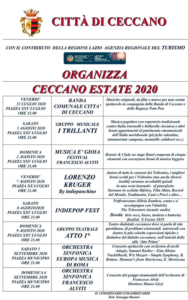 8 serate musicali e teatrali per valorizzare il centro di Ceccano