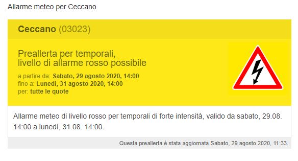 E’ stato emesso un avviso di prellaerta meteo per Ceccano per temporali anche di forte intensità