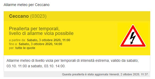 Per la giornata di sabato 3 ottobre è stata emessa una preallerta per temporali anche di estrema intensità. Attenzione soprattutto alle ore antimeridiane