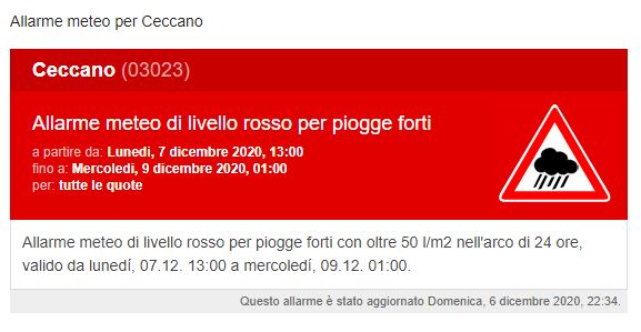 Oltre 50 litri al metro quadro. è quanto si attende per Ceccano nelle prossime ore